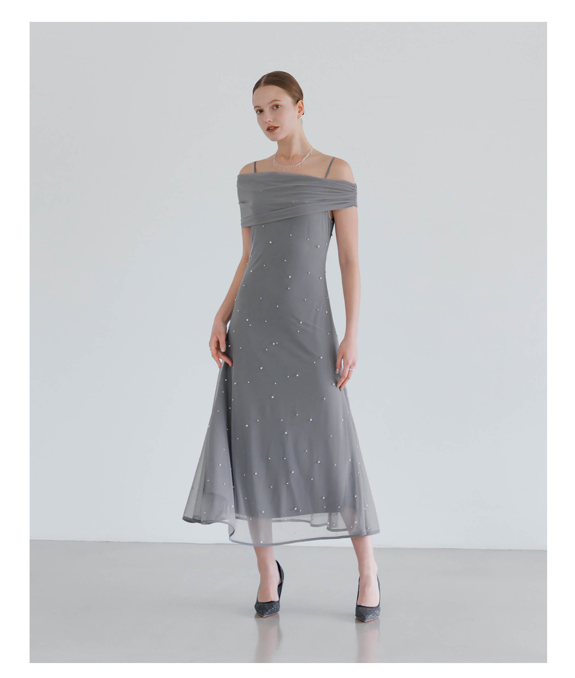 【一部当日発送】2WAYチュールトップスパールAラインワンピースドレス