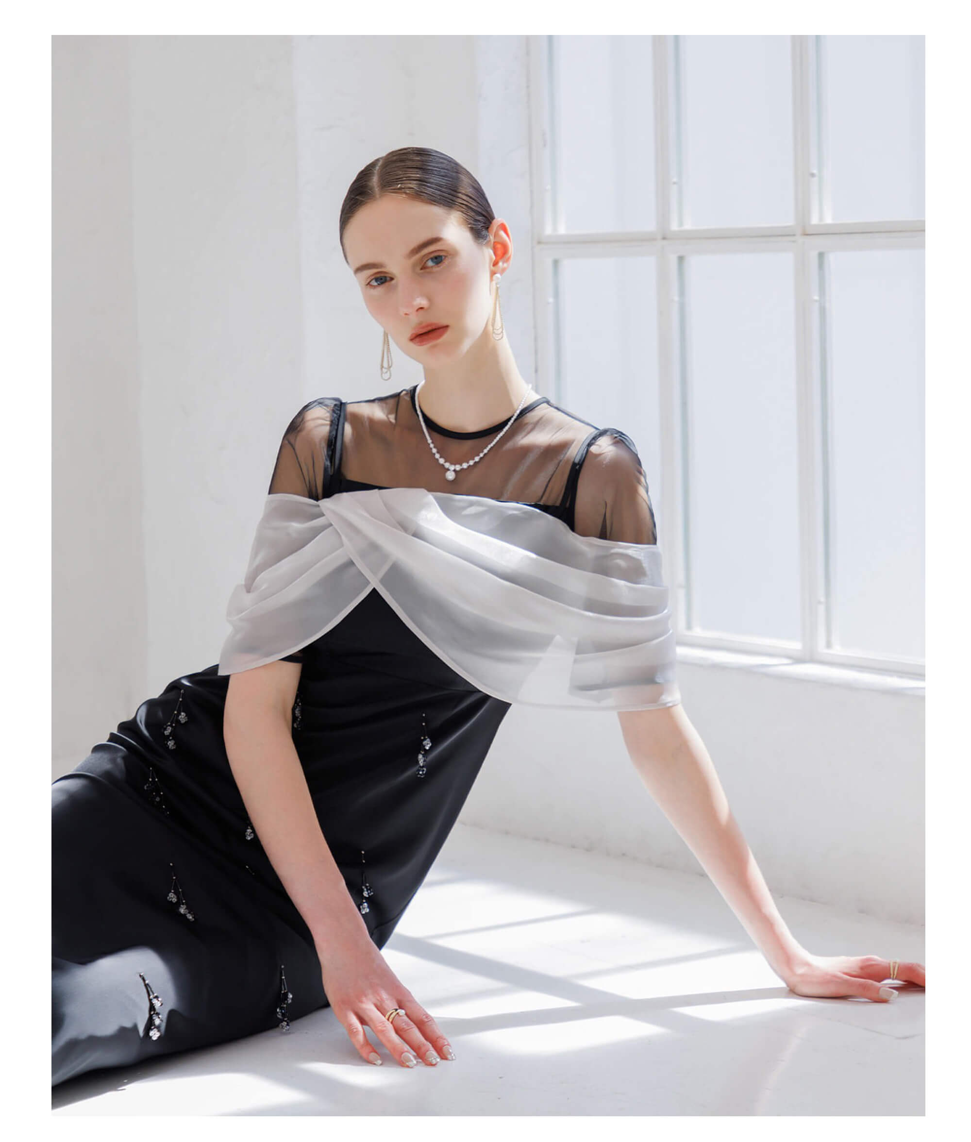 【SOLD OUT】2WAYシアーレイヤードビスチェIラインワンピースドレス