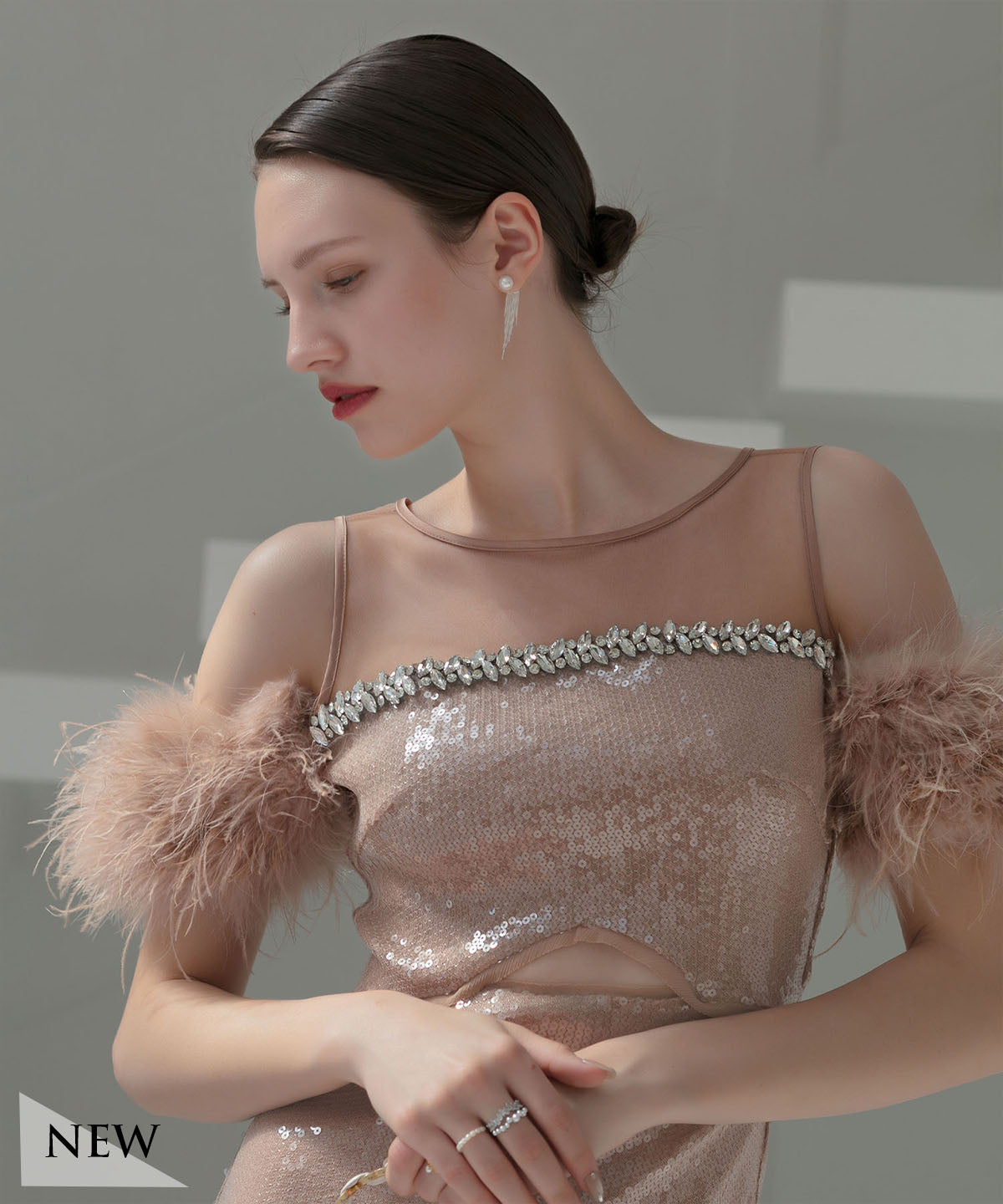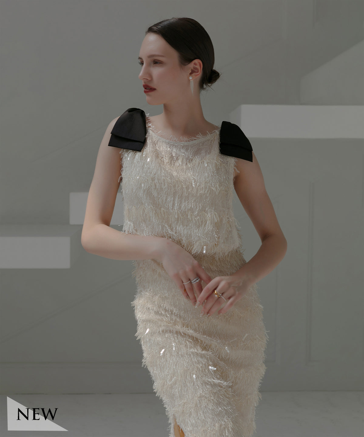 【当日発送】スパンコールパールミックスボレロIラインワンピースドレス