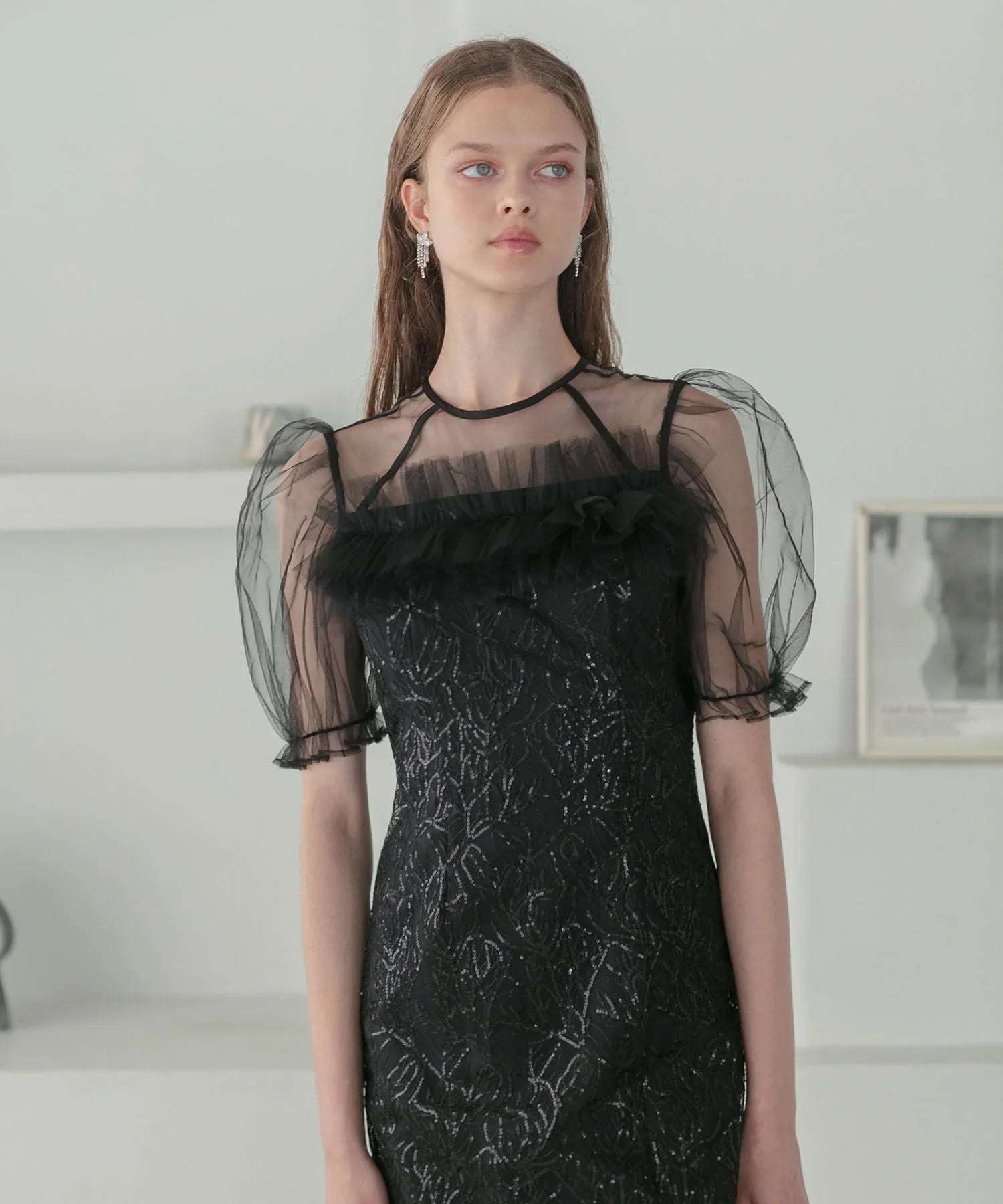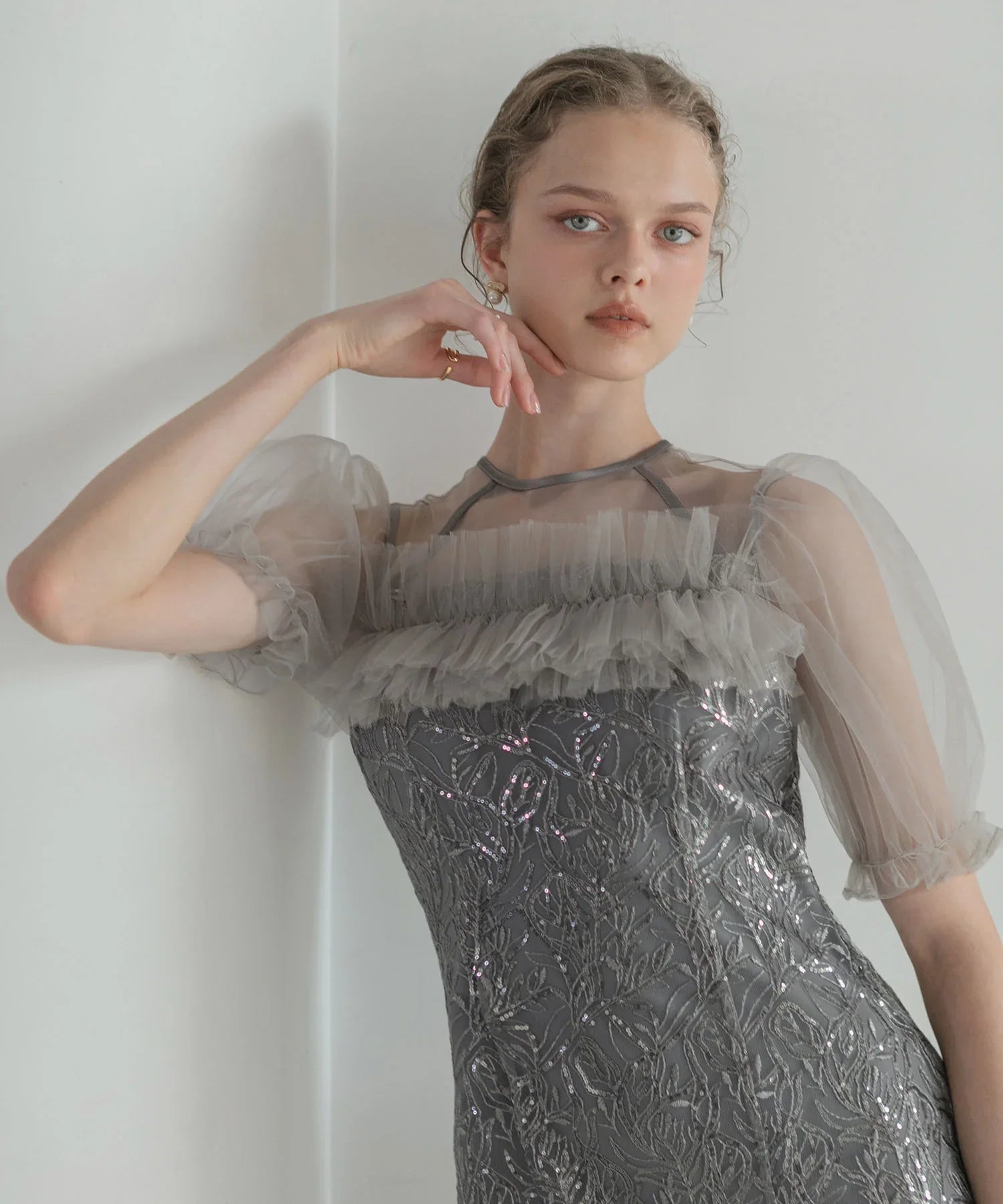 【COMING SOON】チュールフリルビスチェIラインワンピースドレス