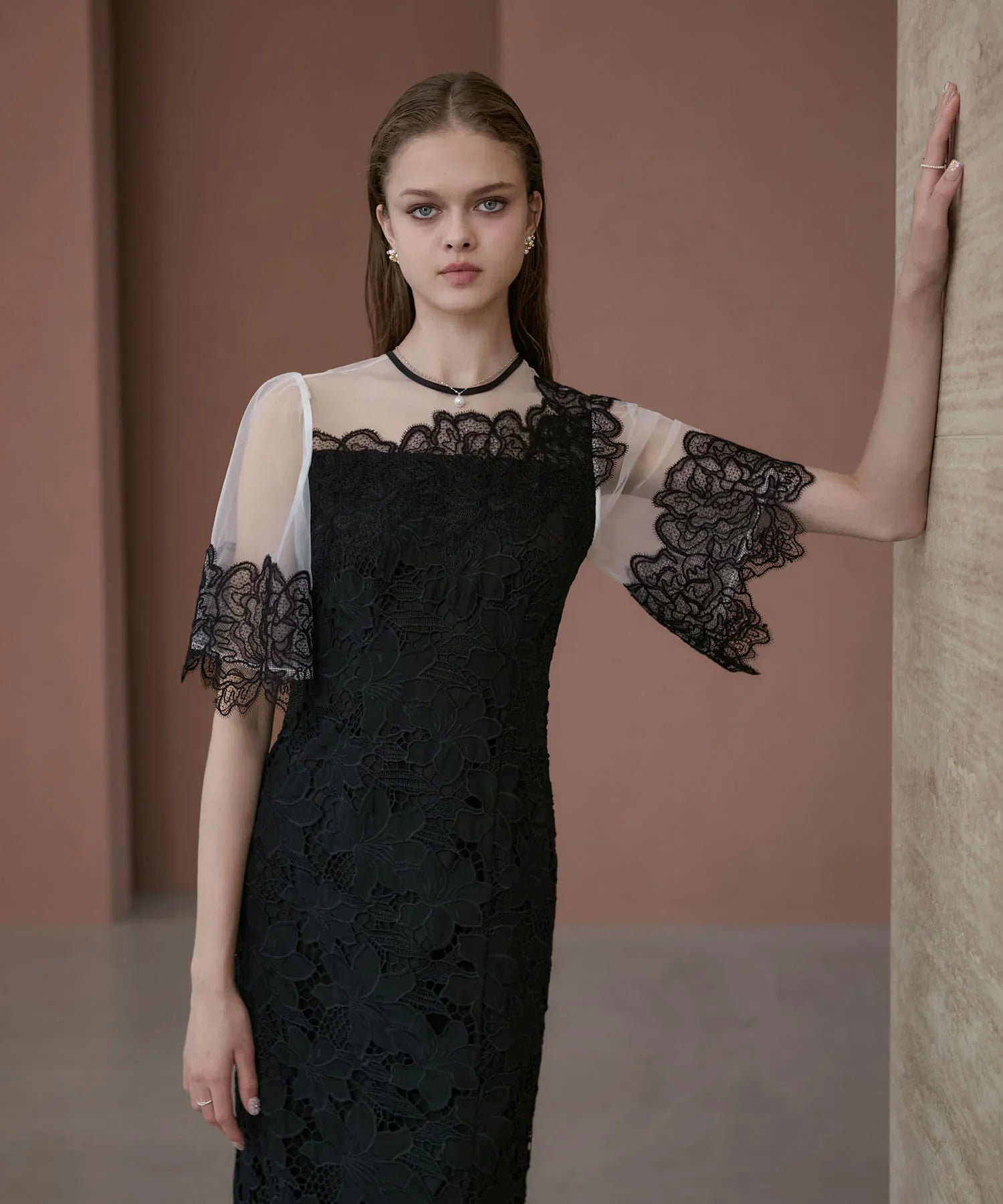 【COMING SOON】3WAYオフショルチュールトレンチディティールワンピ―スドレス