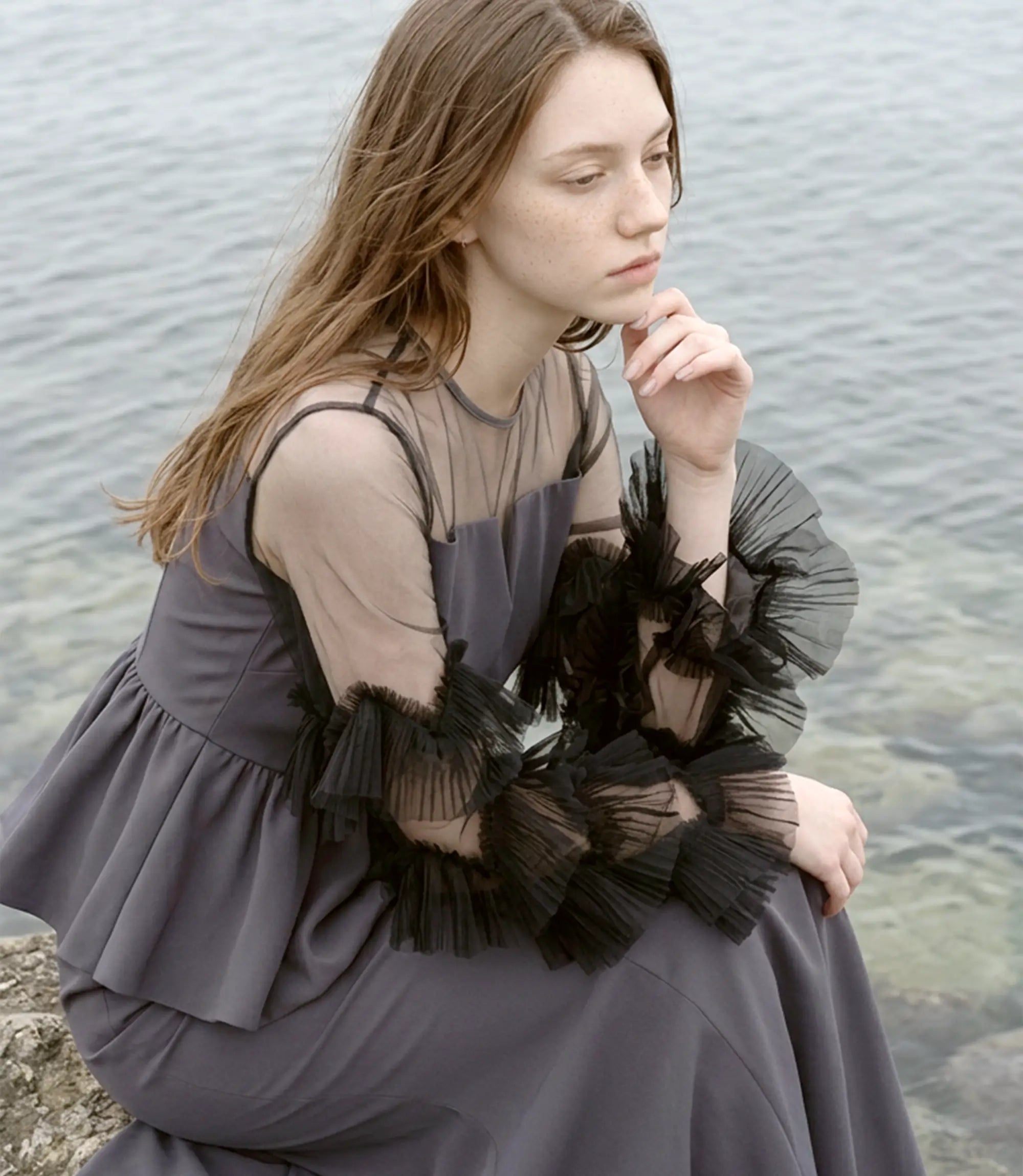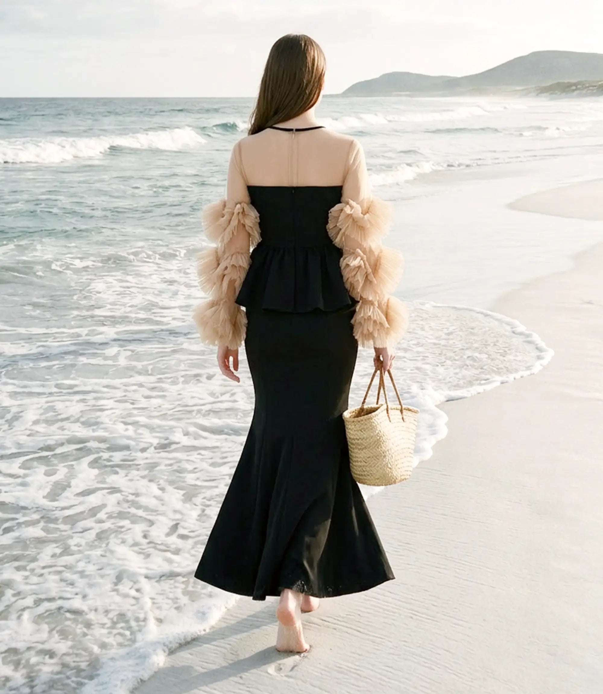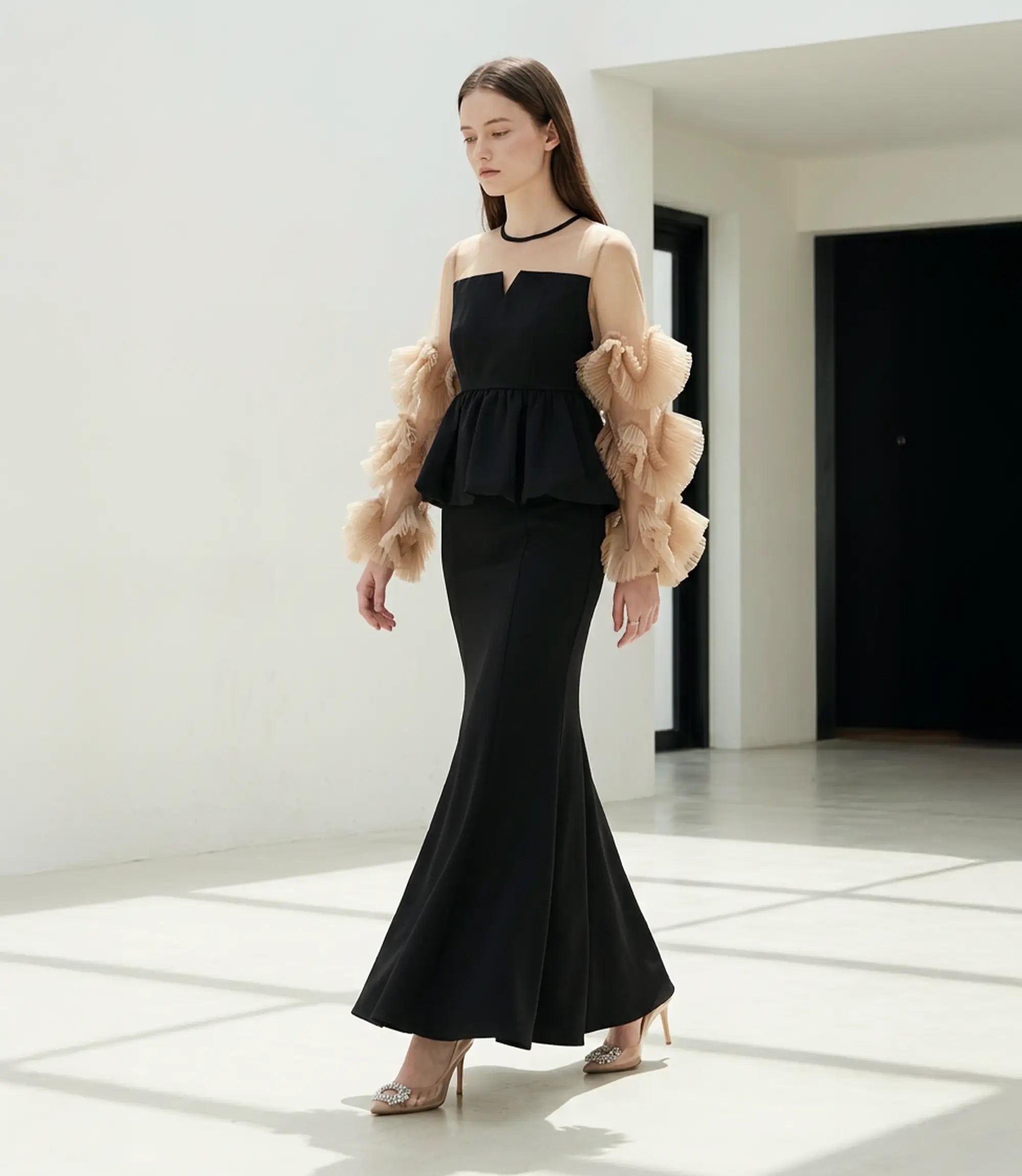 Volume Tulle Sleeve Peplum Mermaid Set-Up Dress | ¥19,700 (tax-in)