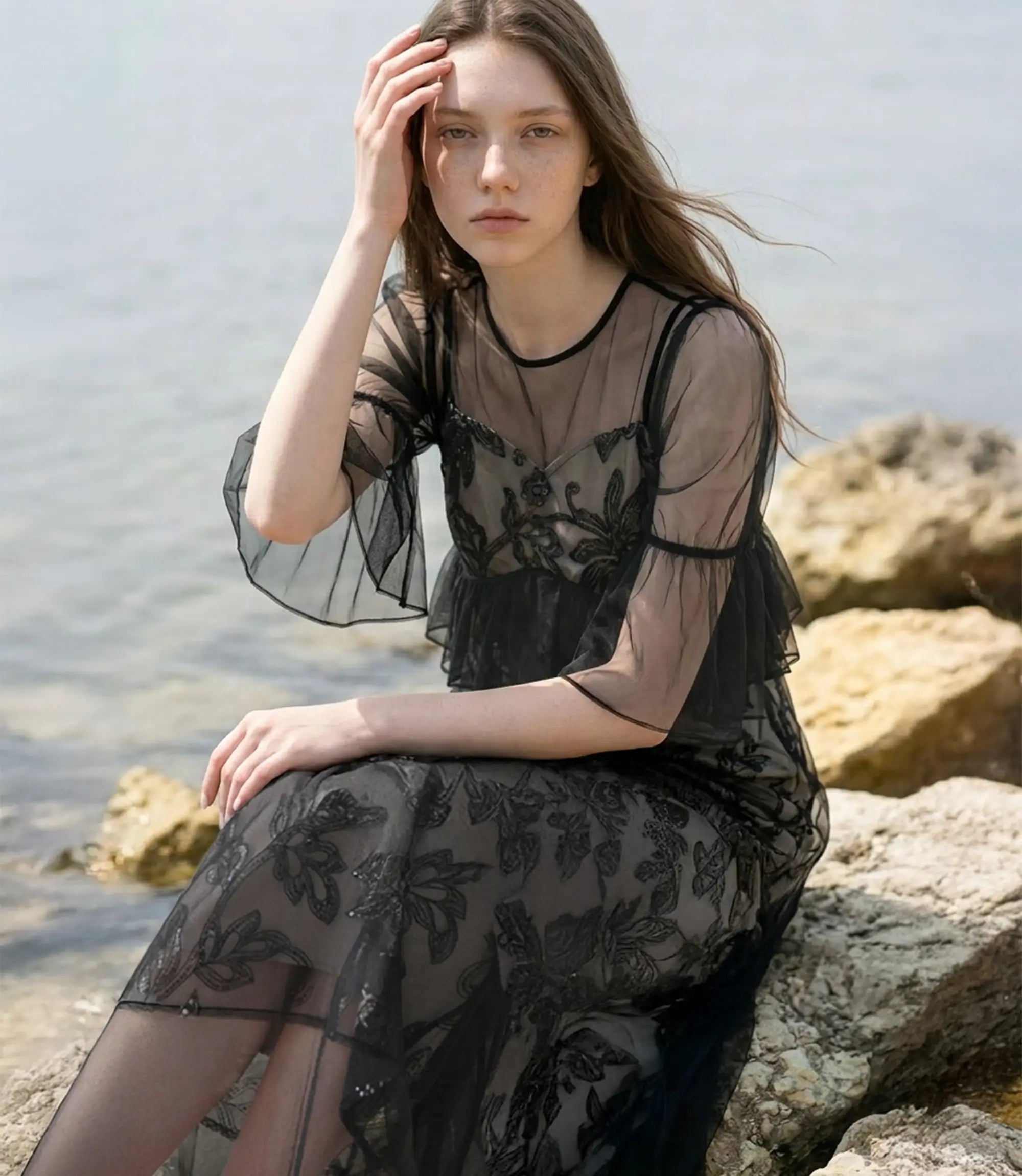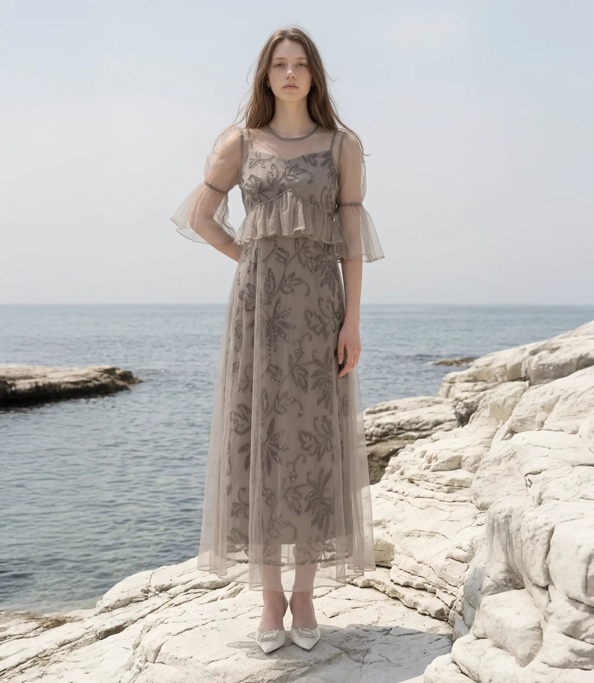 Floral Sequin Tulle Sheer Camisole Layered Dress | ¥19,700 (tax-in)