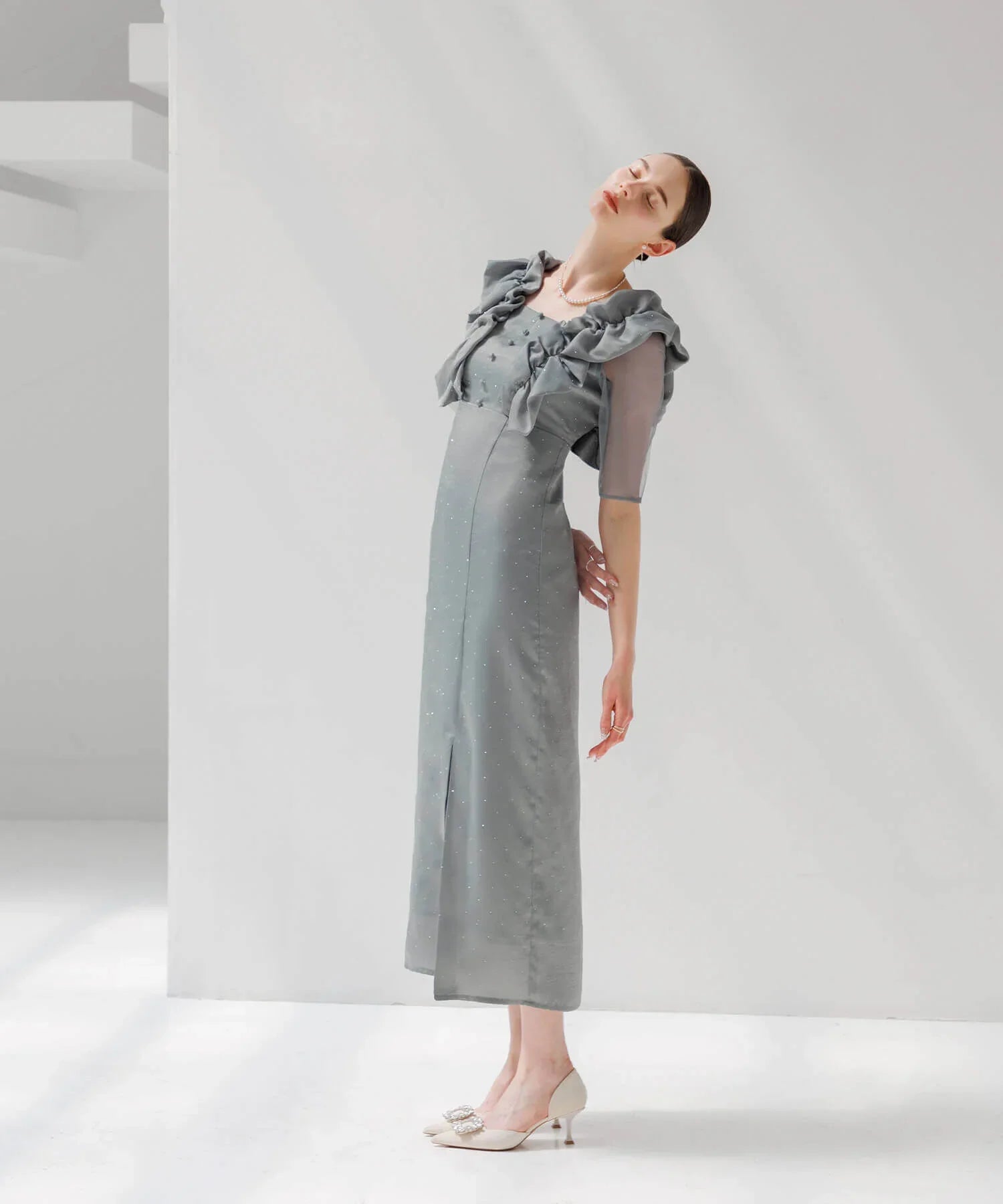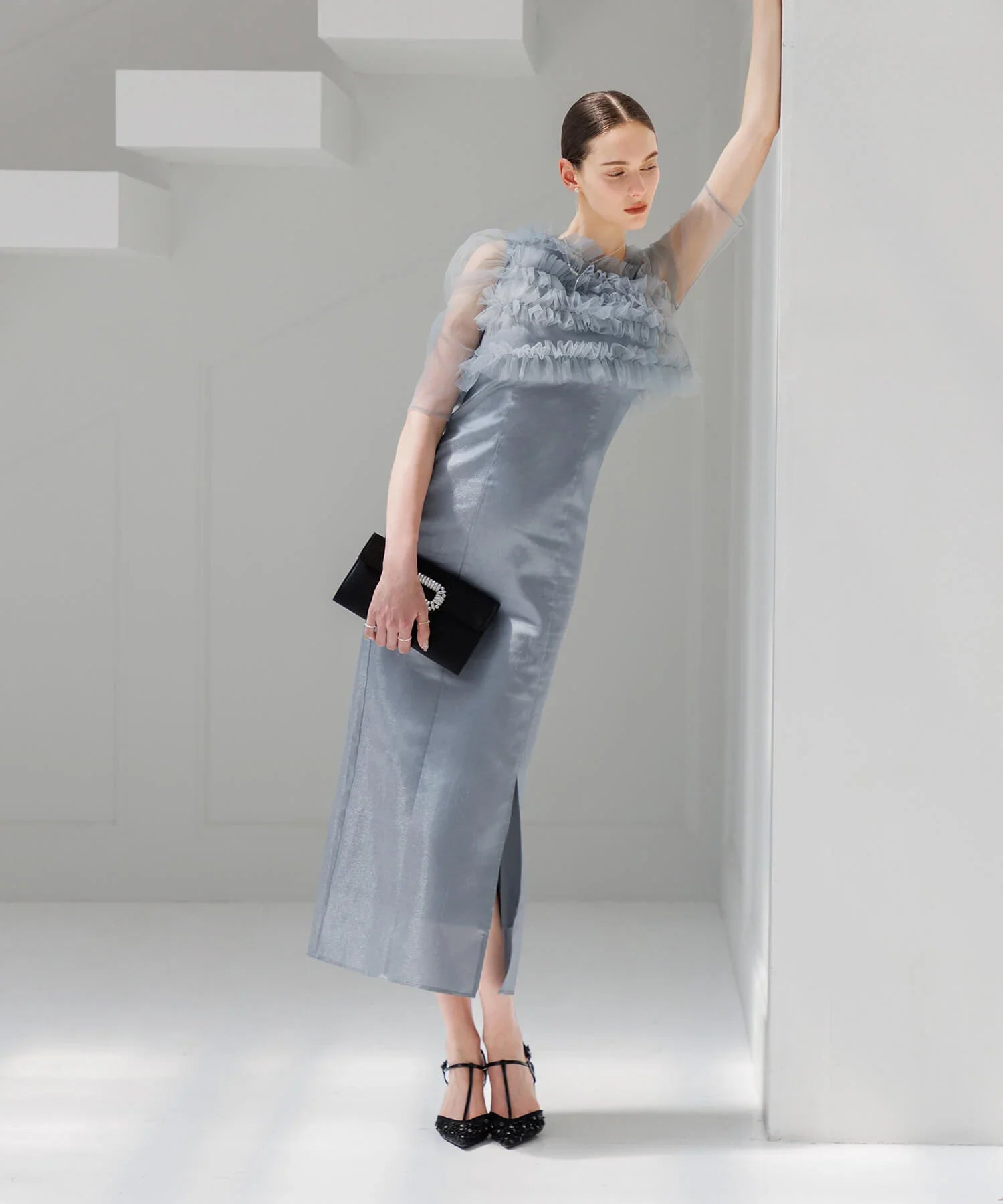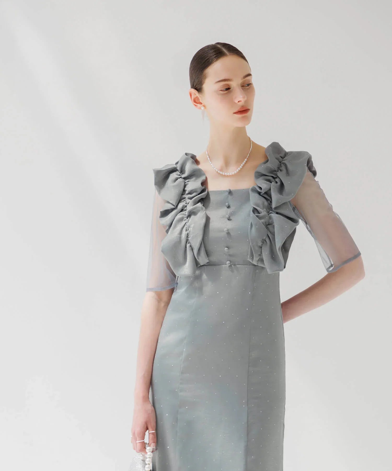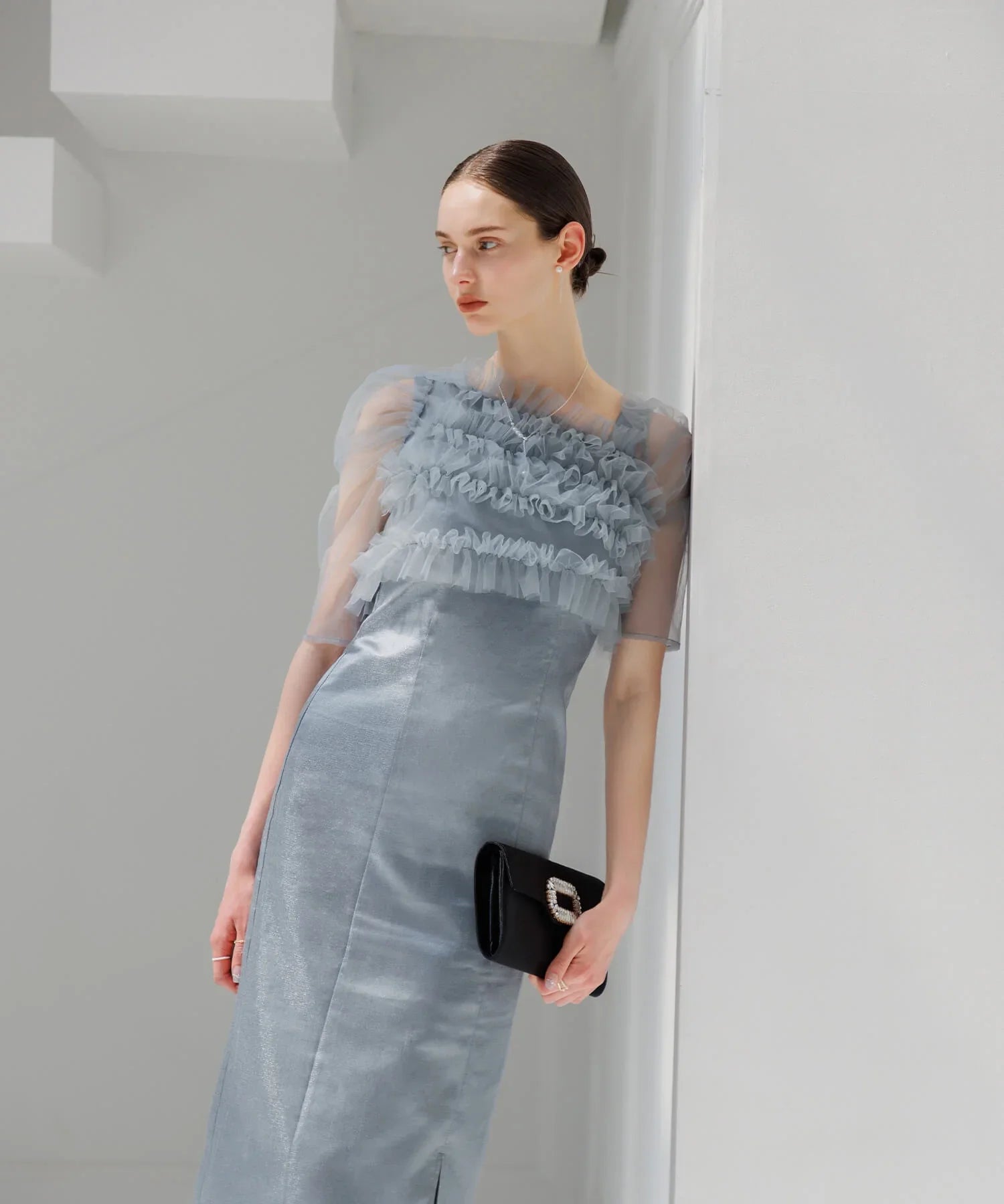 【当日発送】グラスオーガンジーフリルスリーブフロントIラインワンピースドレス