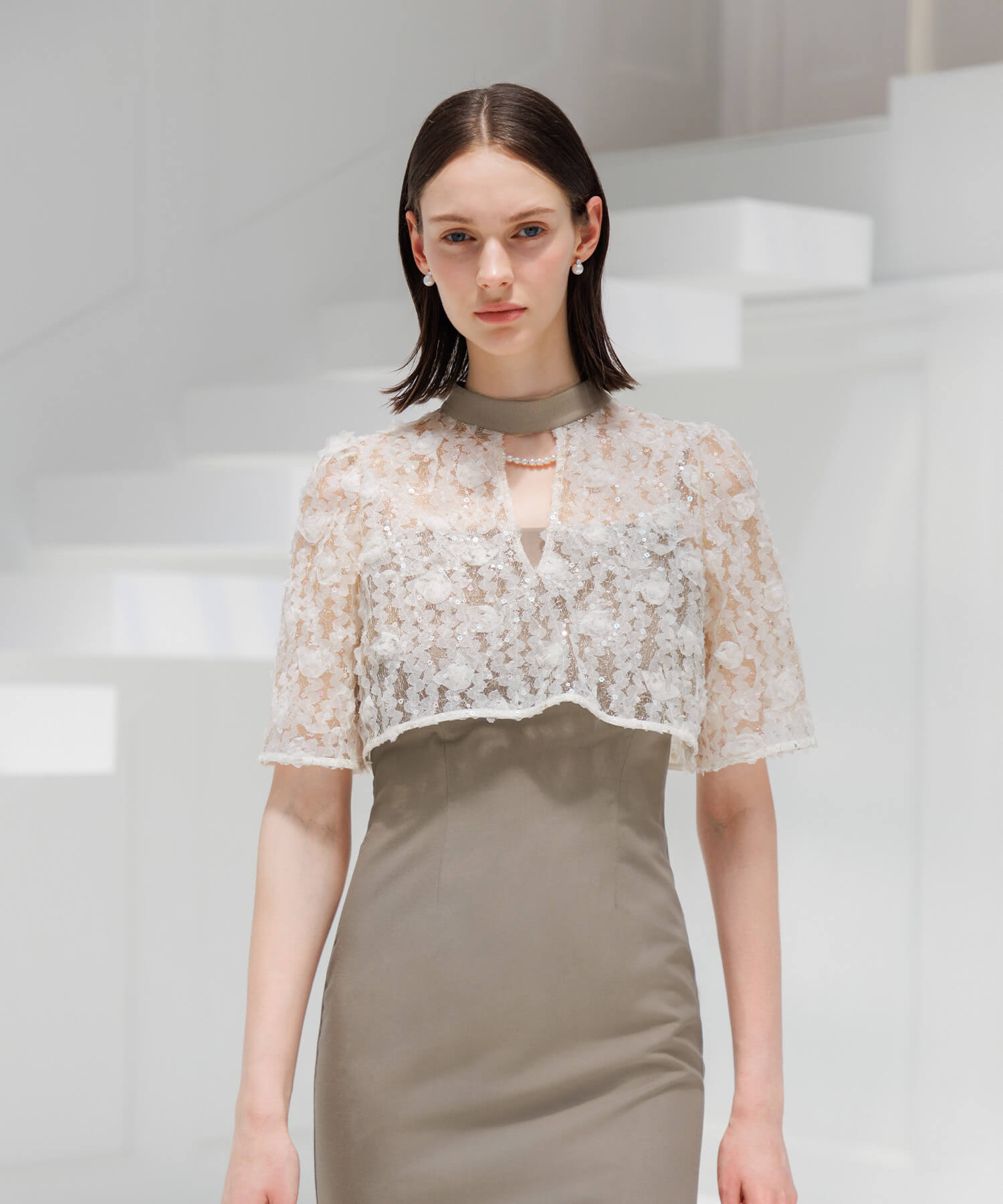 【当日発送】ローズボレロシアースリーブIラインワンピースドレス