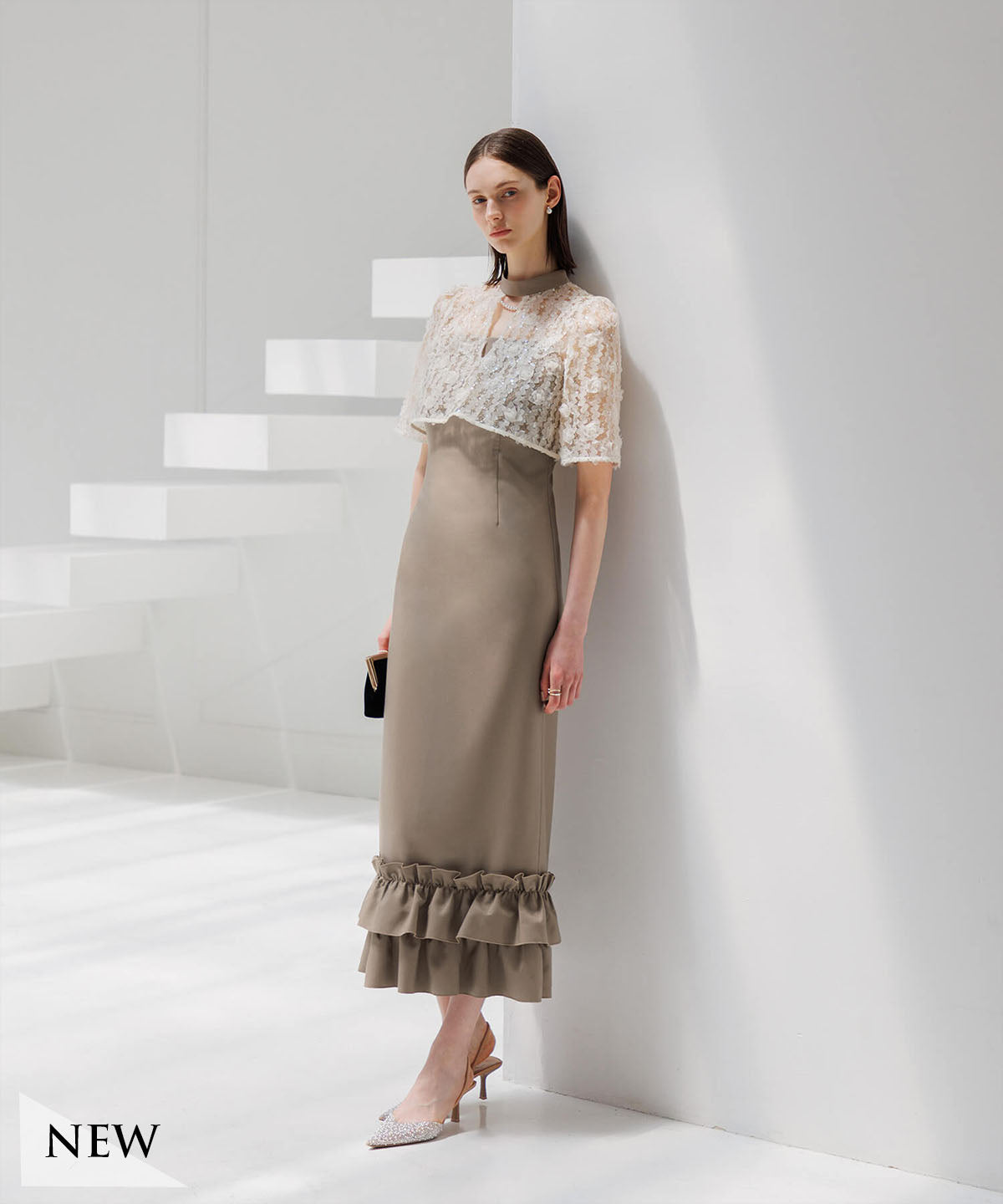 【SOLD OUT】チュールアシンメトリーティアードフリルIラインワンピースドレス