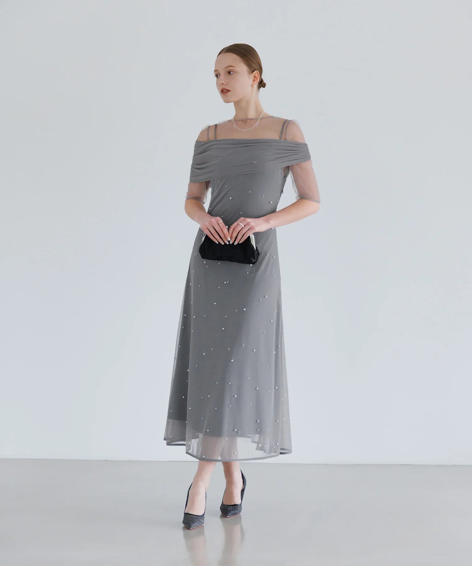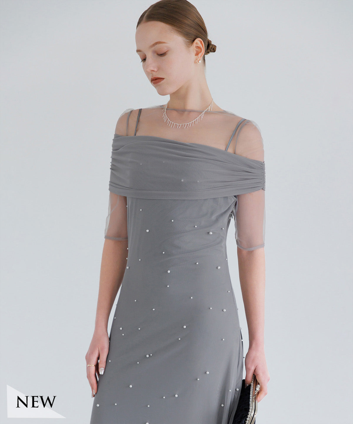 【一部当日発送】2WAYチュールトップスパールAラインワンピースドレス