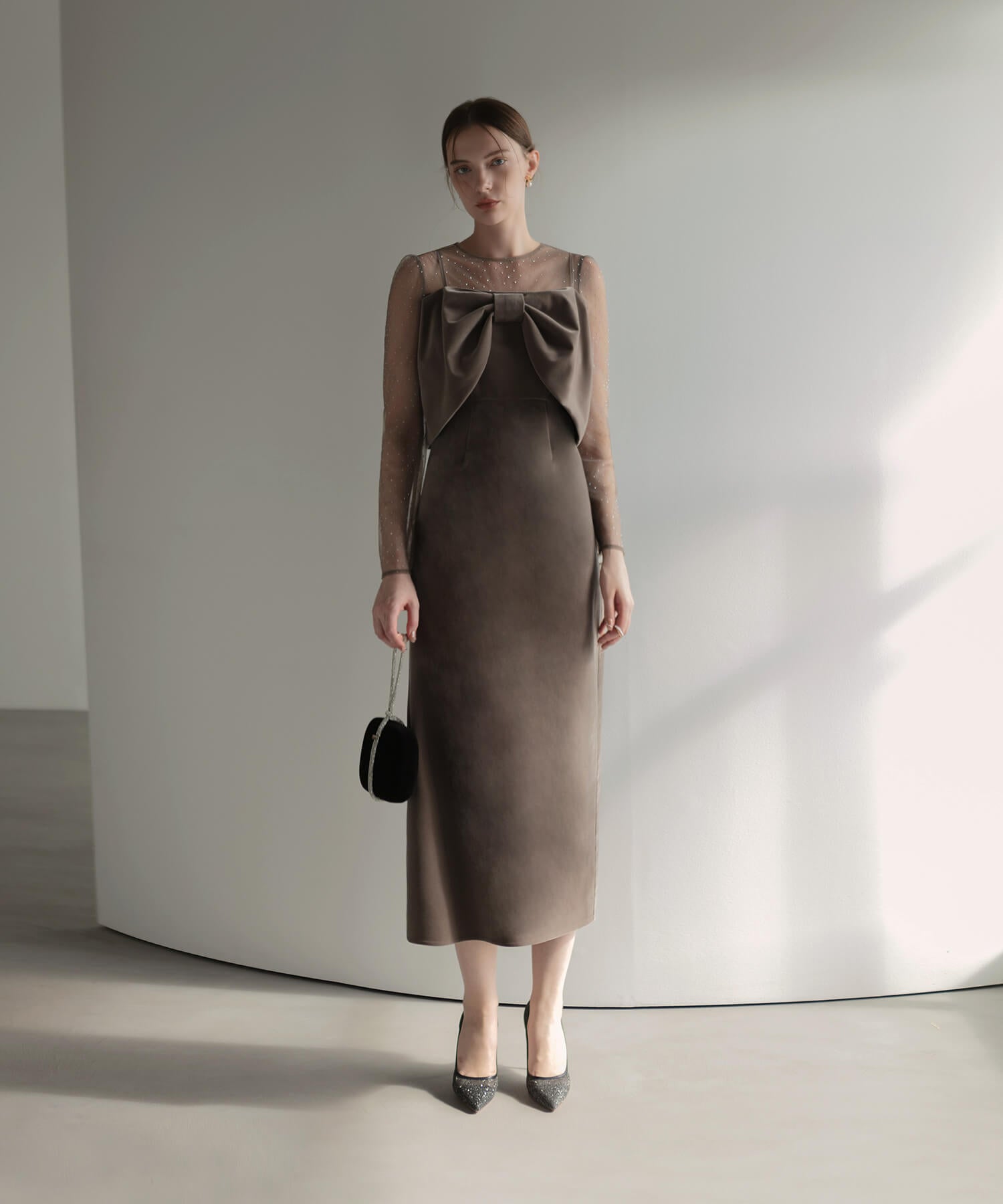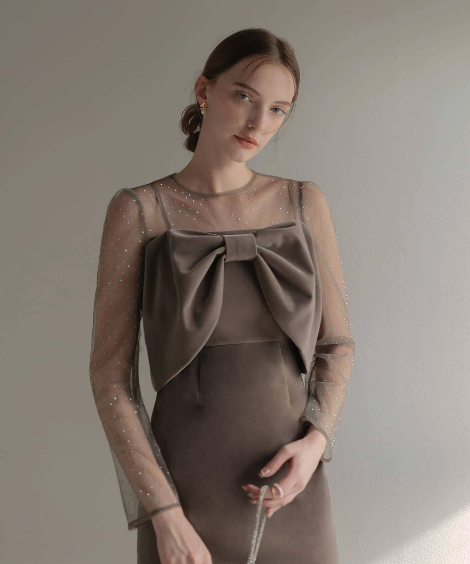 [Some items will be shipped the same day] 2WAY Ribbon Bustier Dot Stone Velour Dress