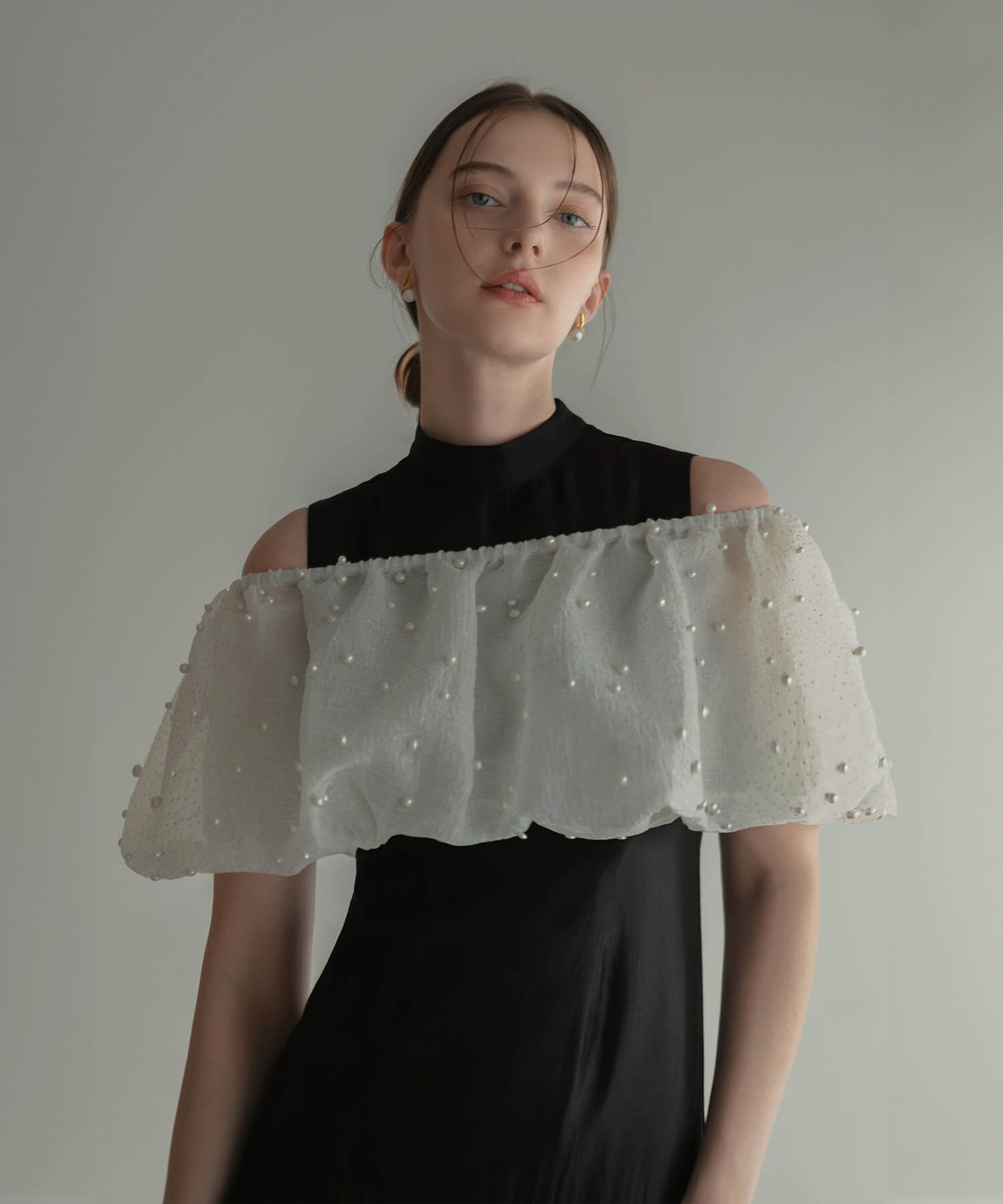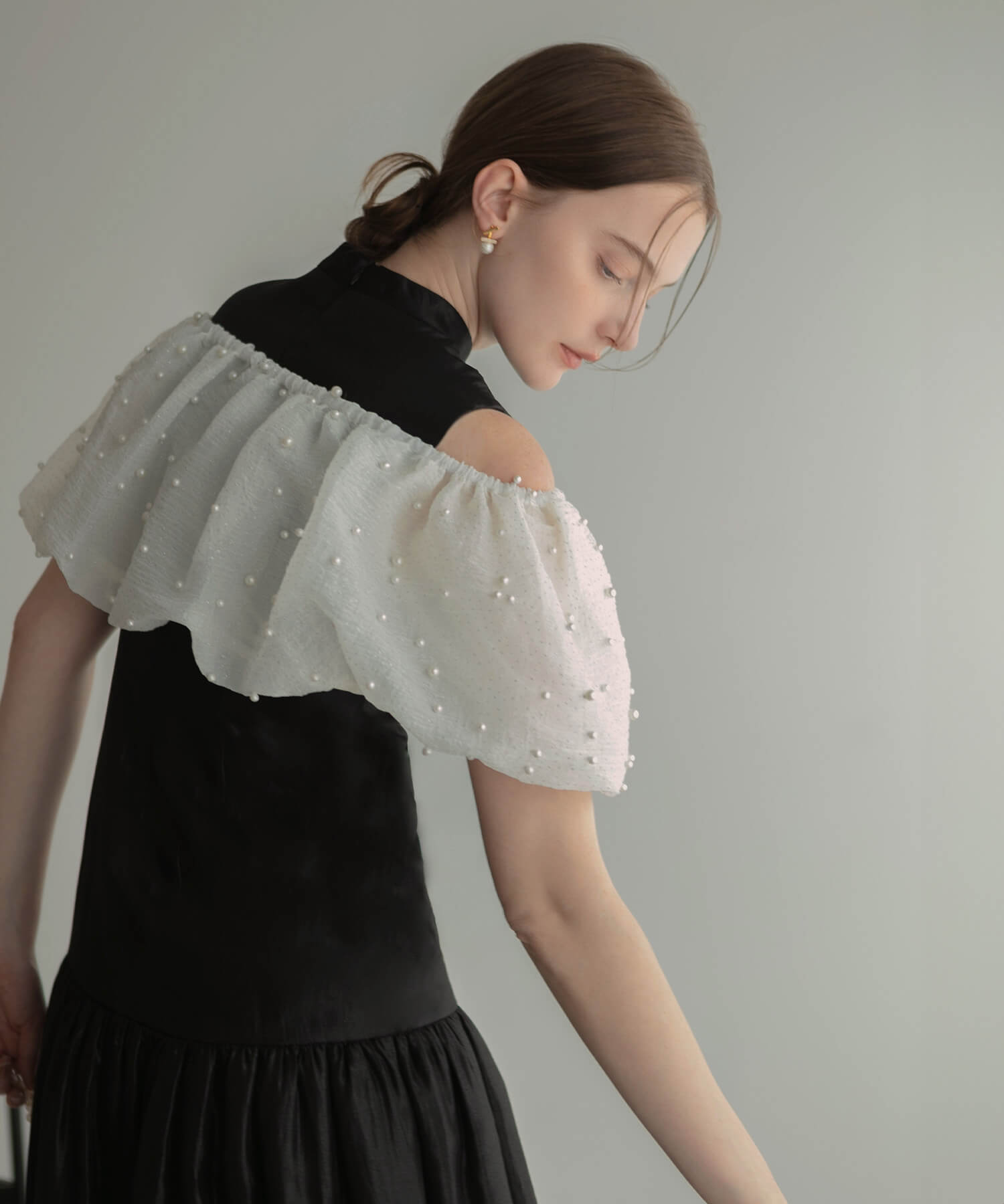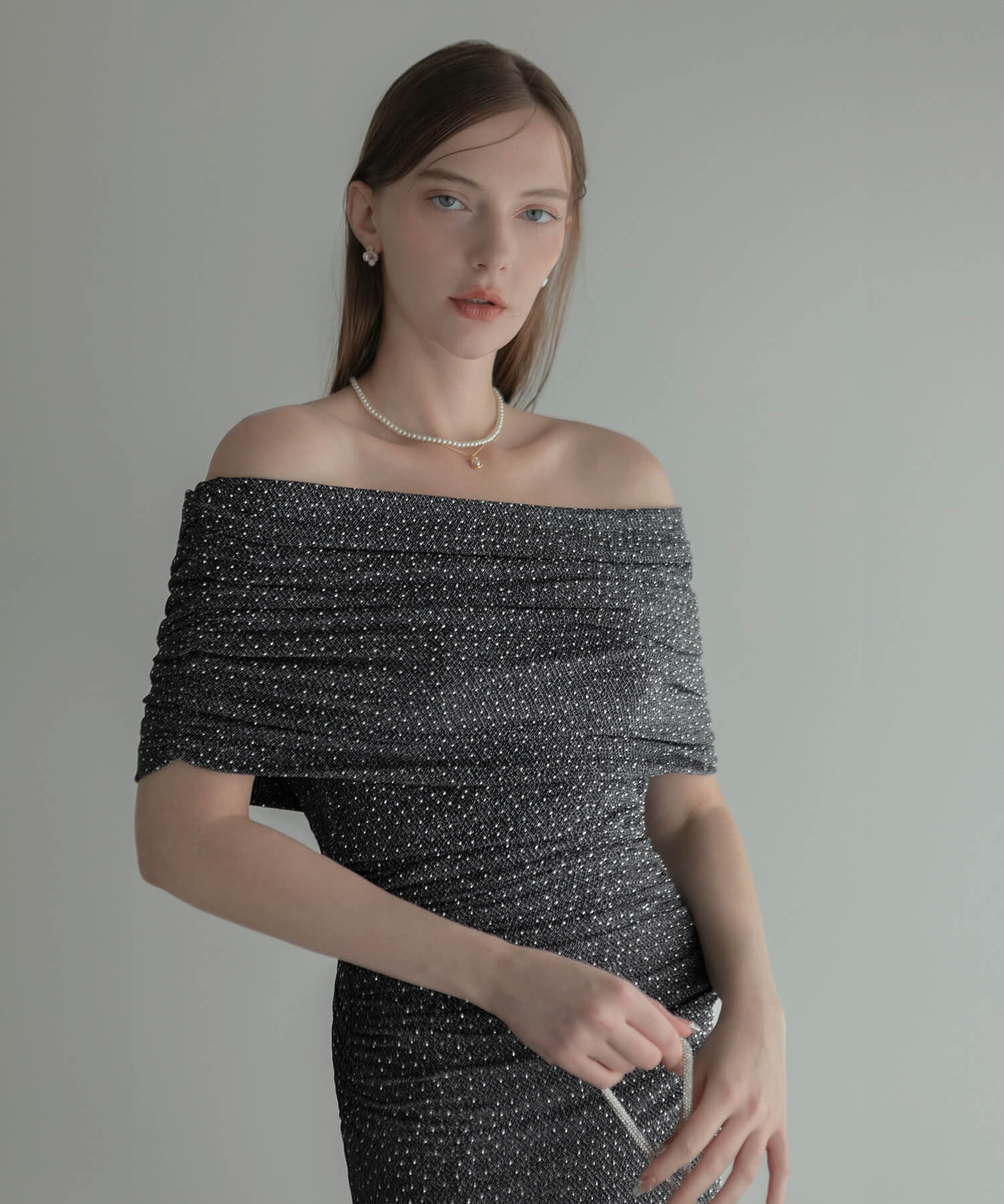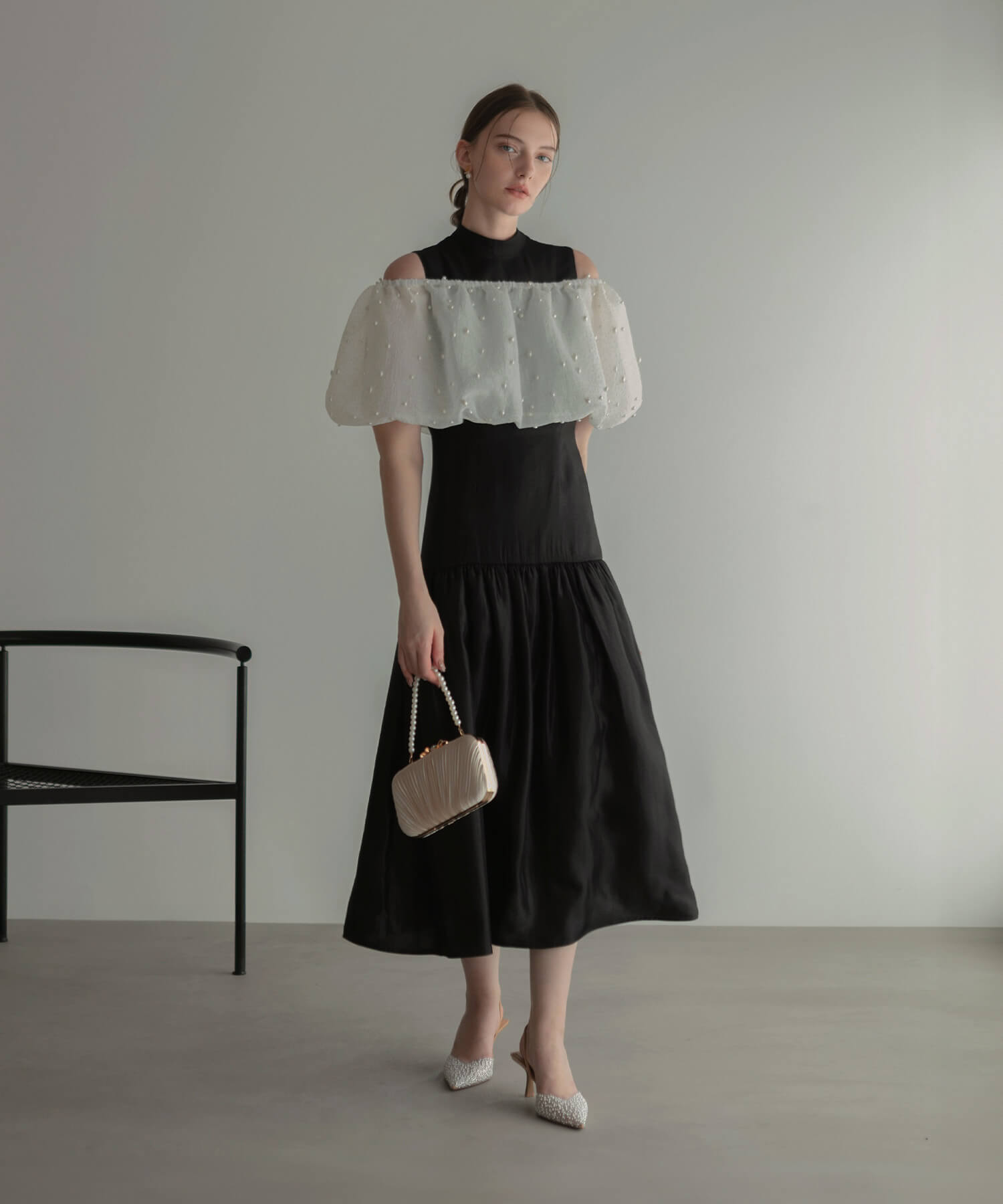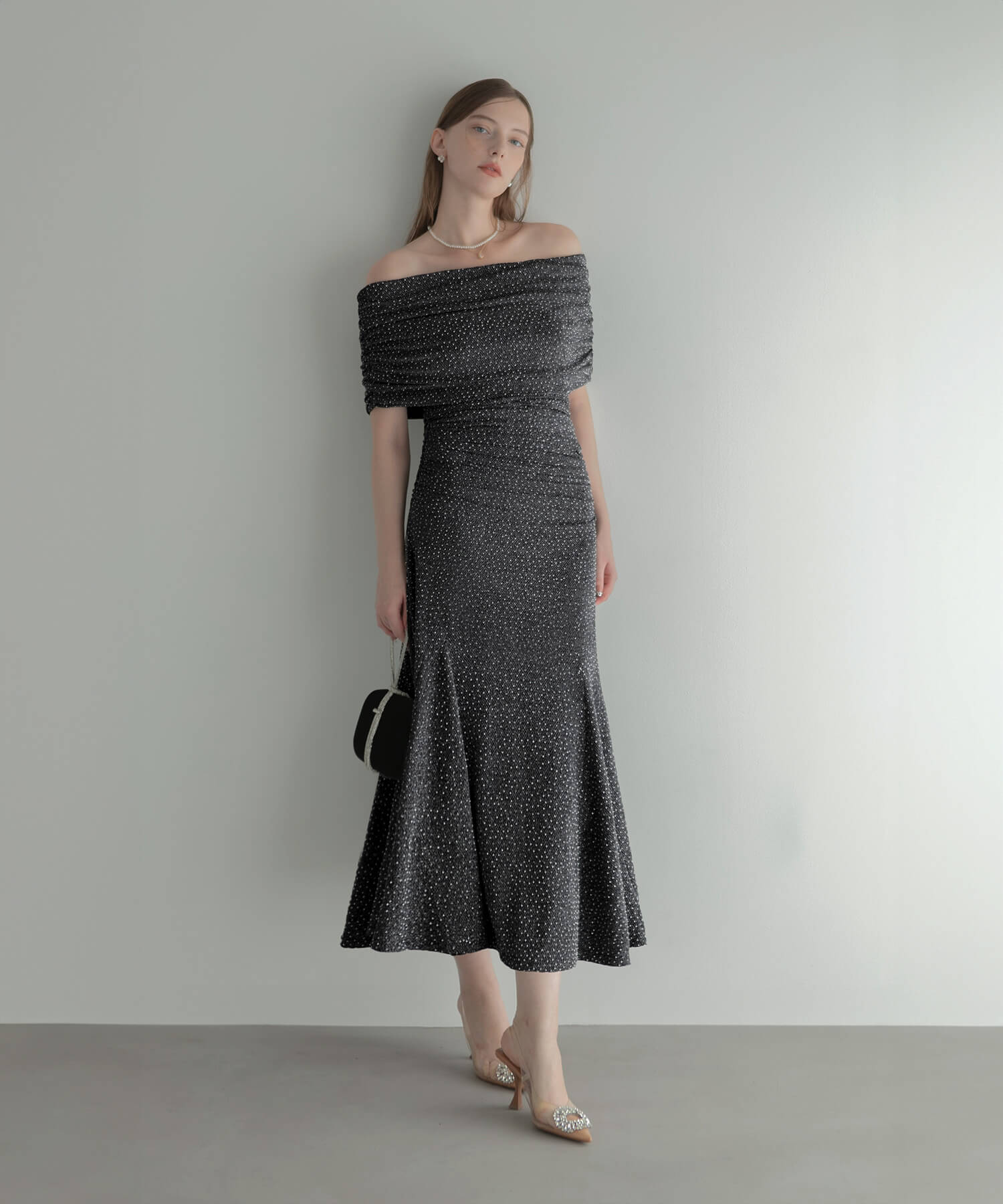 [Same-day shipping] Pearl lame bolero off-shoulder A-line dress