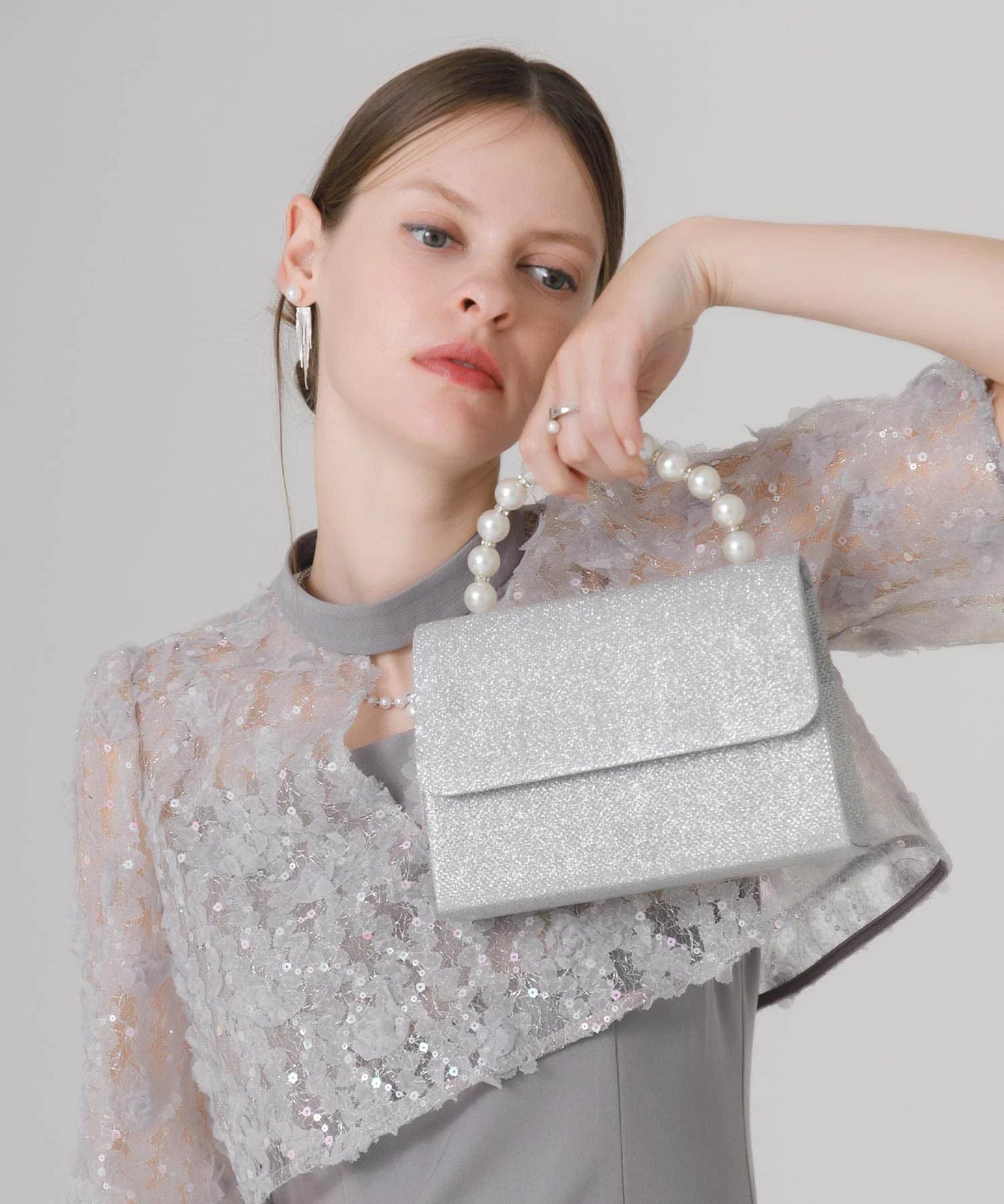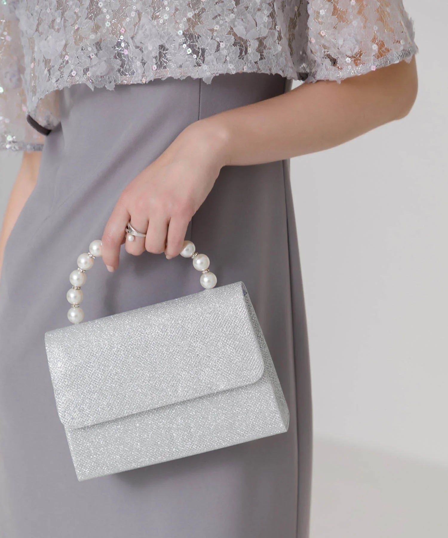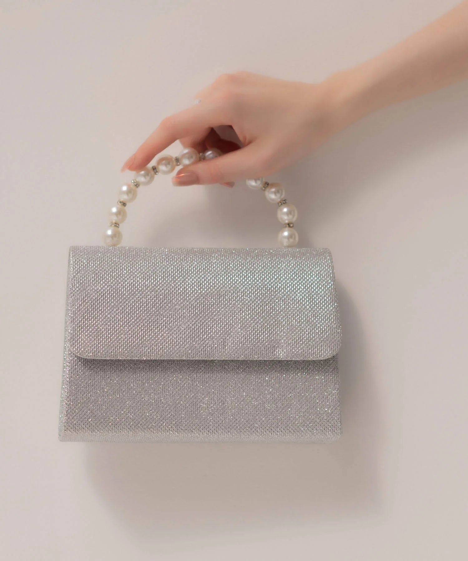 上質感のあるラメ素材にパールハンドルを組み合わせ、シーンを問わず品よく華やかな存在感を放ちます。