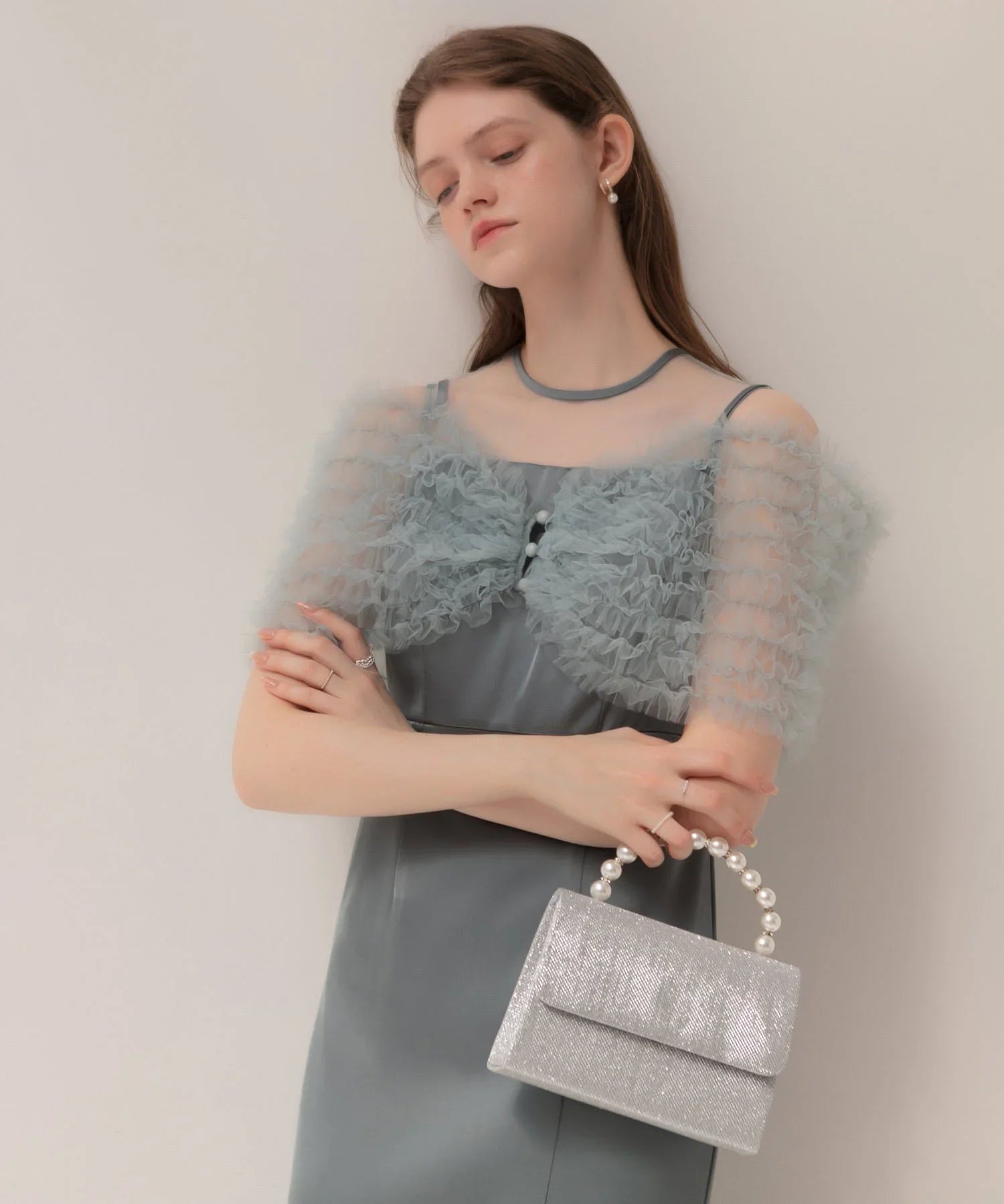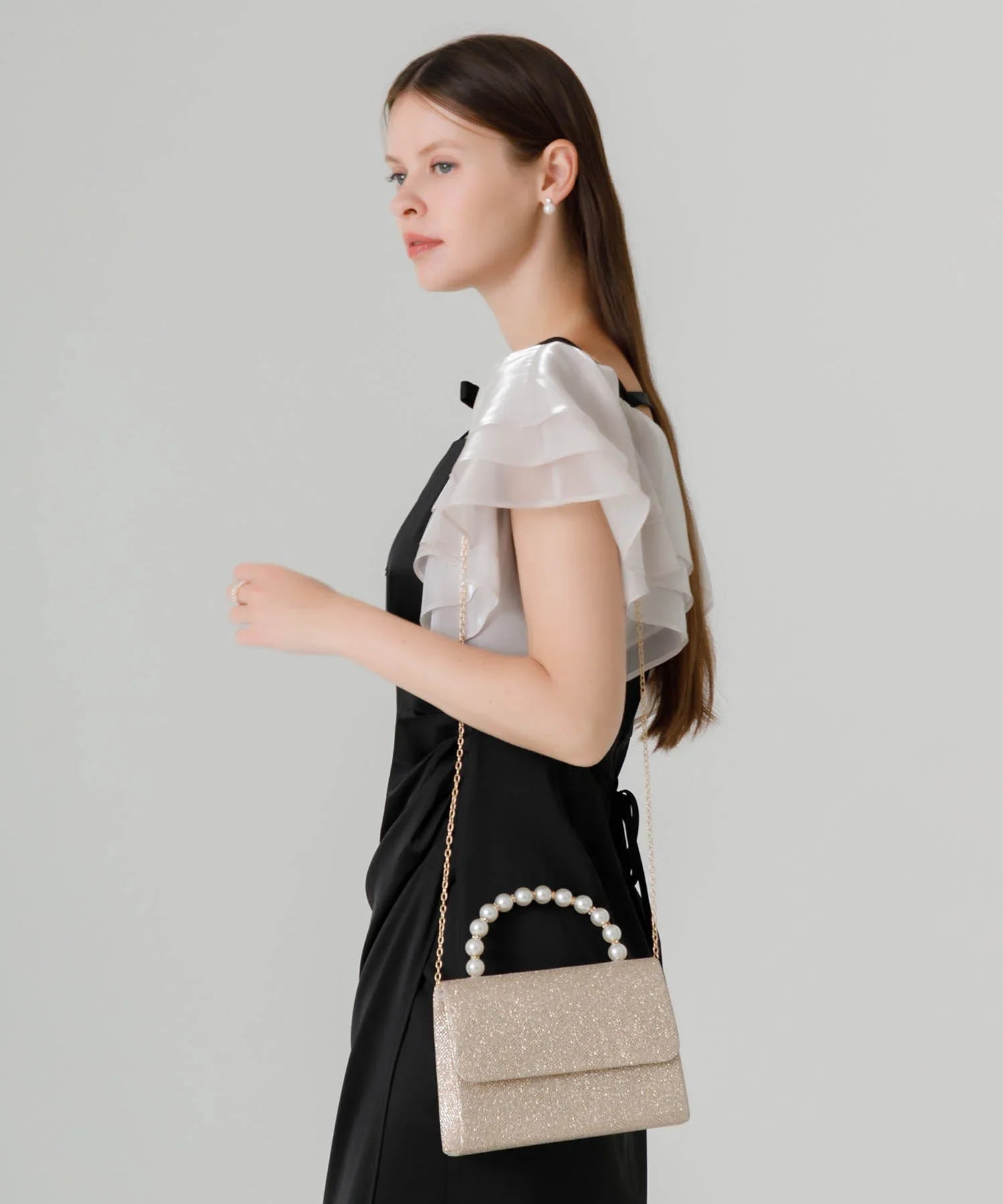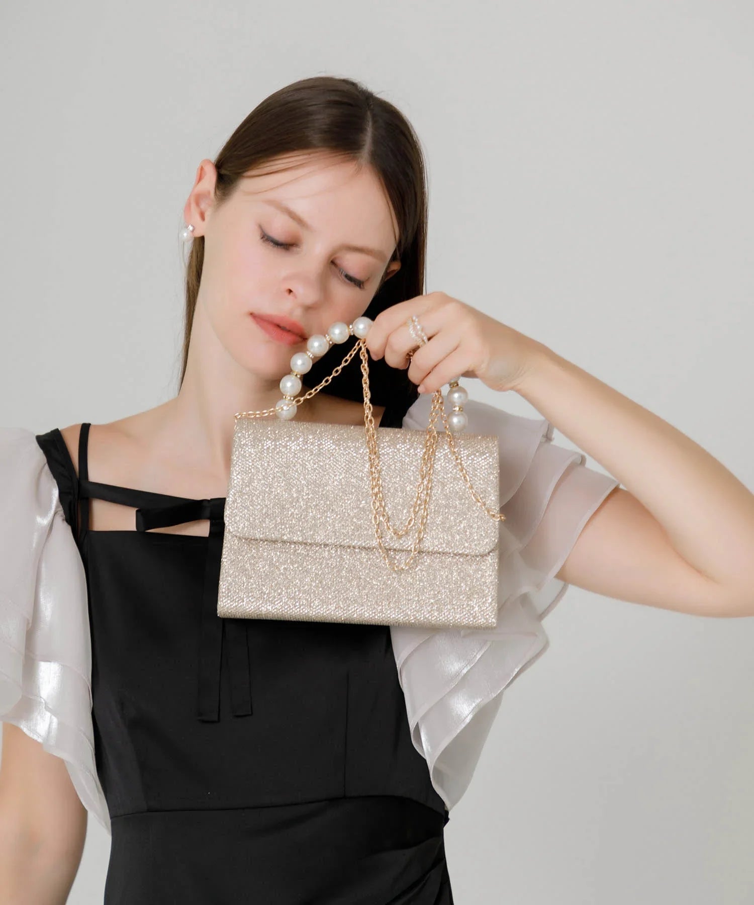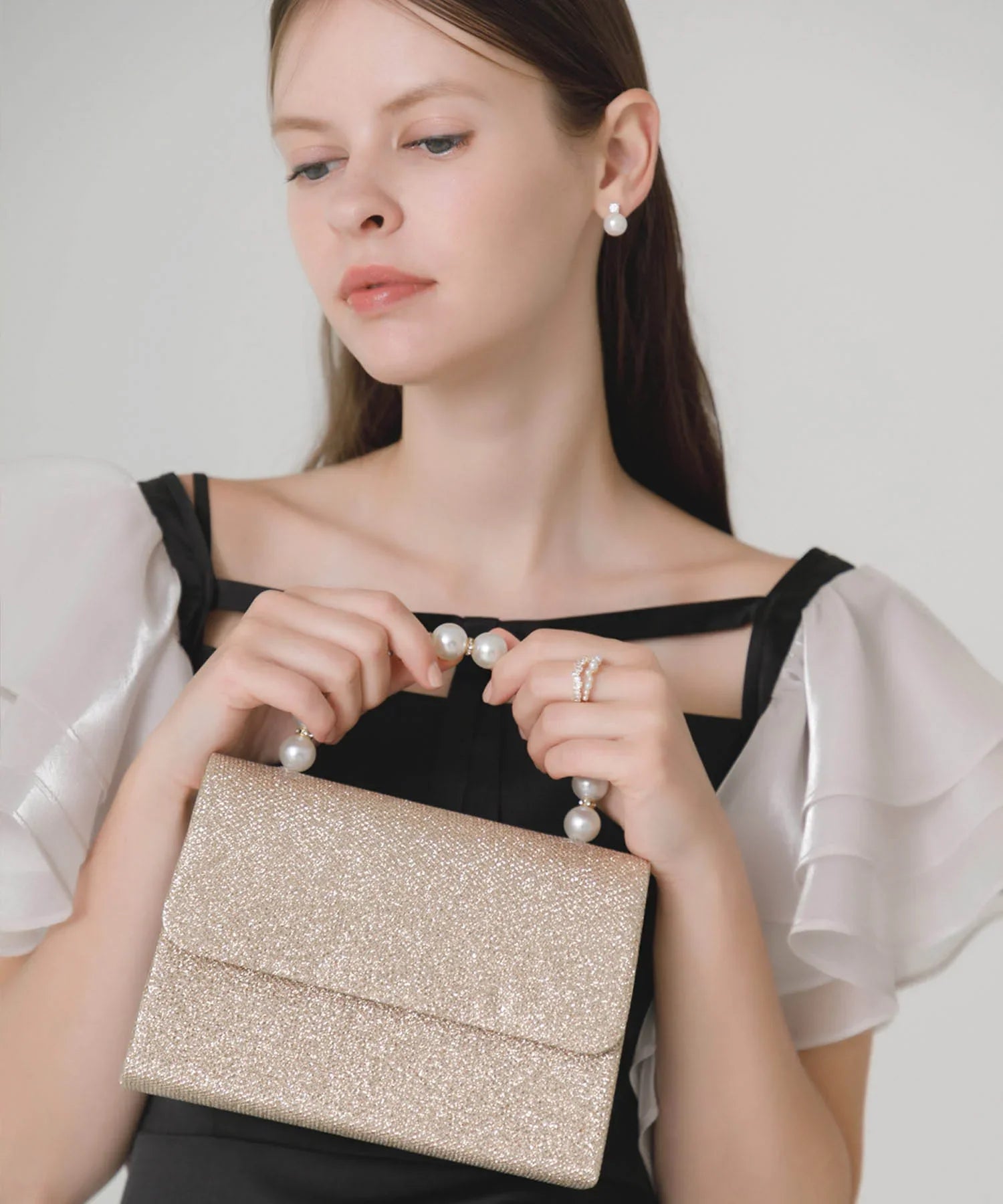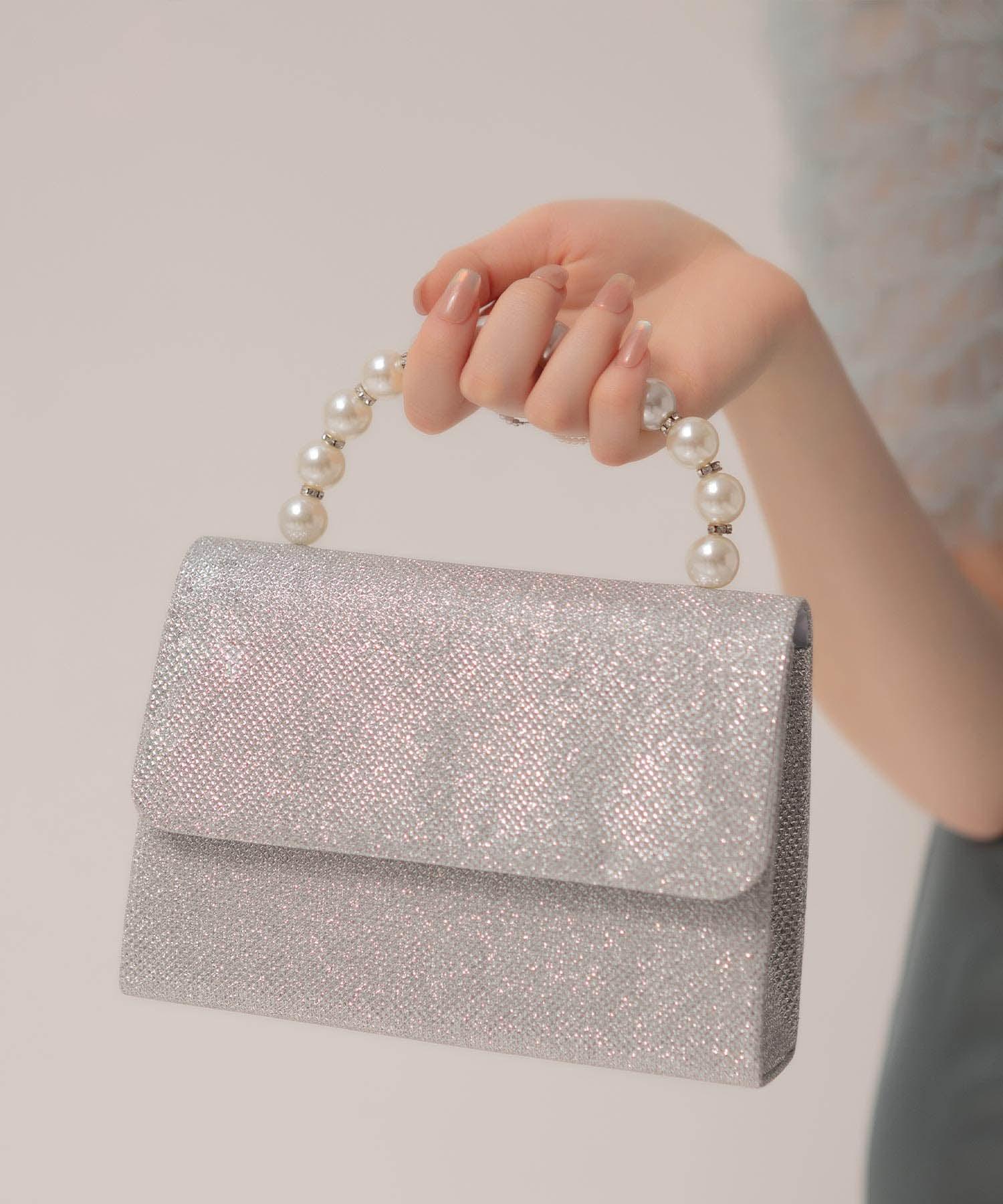 ひとさじの煌めきをアクセントに、手元を美しく彩るパールバッグ。