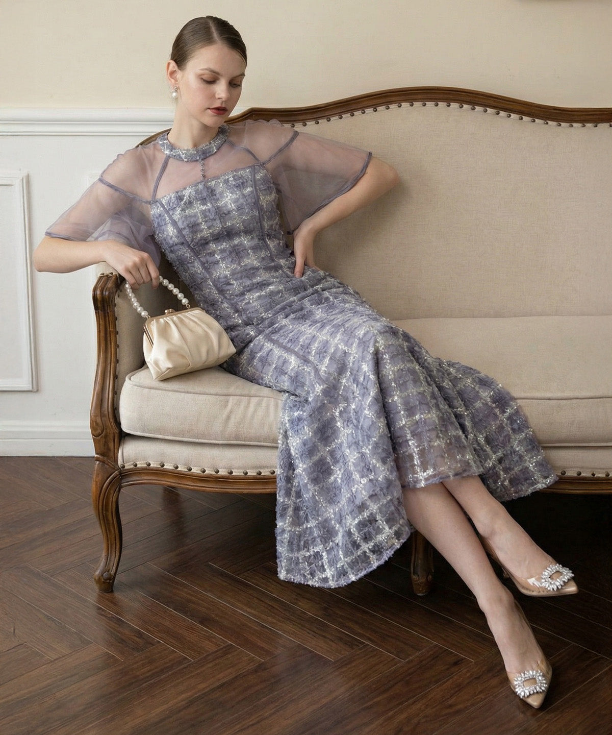 【当日発送】ラメチェックチュールボレロIラインドレス
