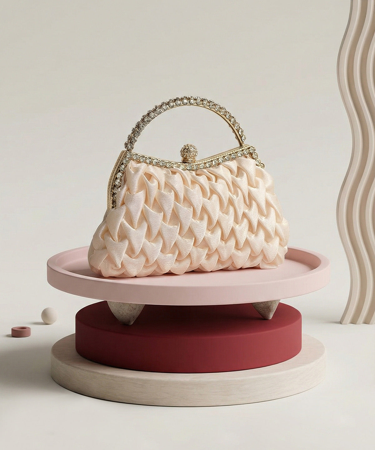 【当日発送】3WAYオールパールビジュー ストライプデザインバッグ