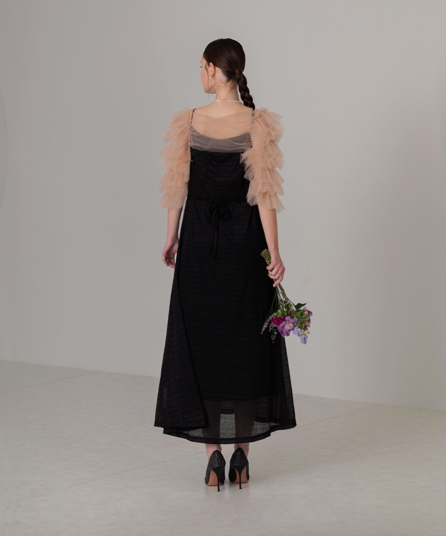 分層式荷葉邊薄紗短上衣連身裙