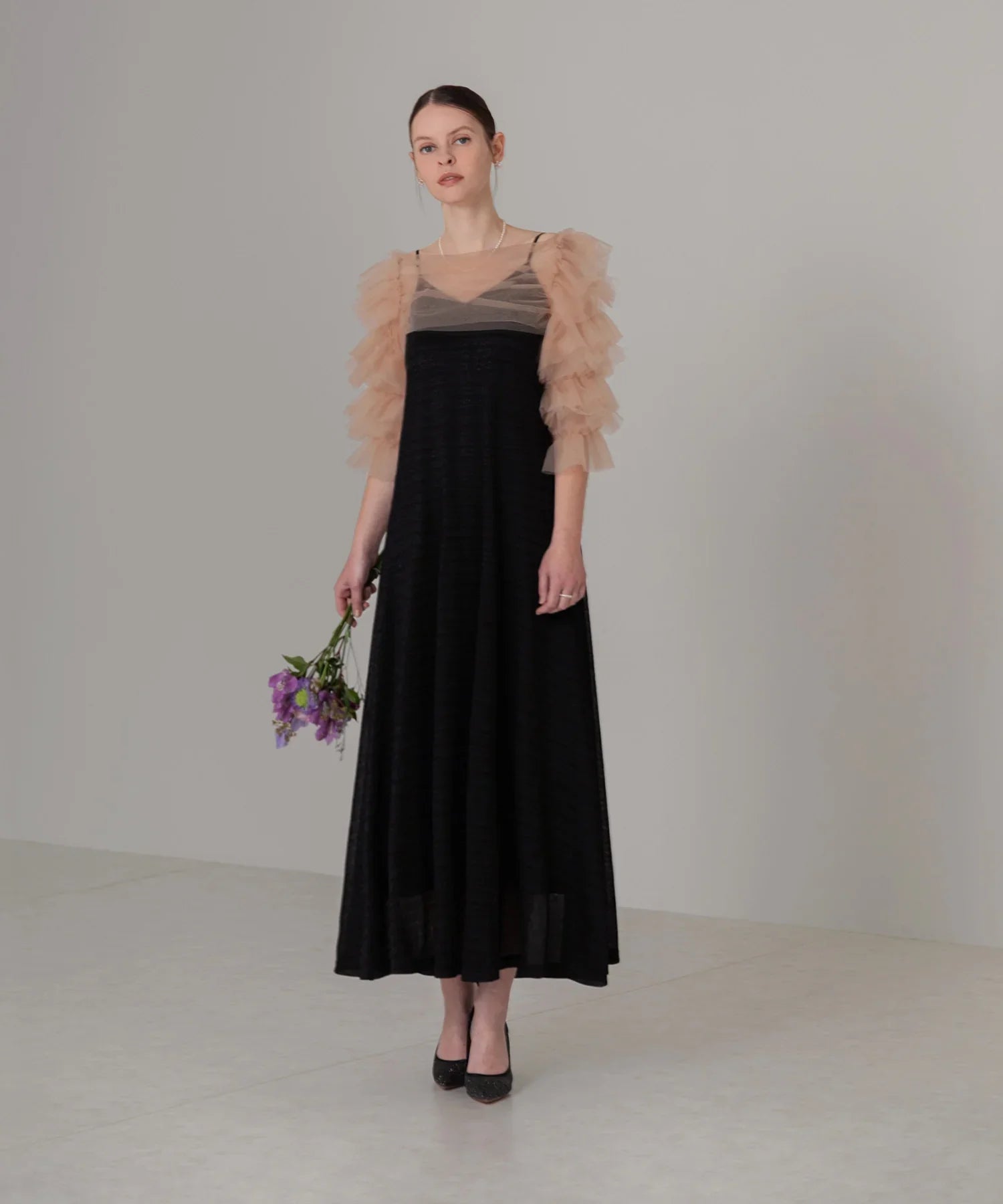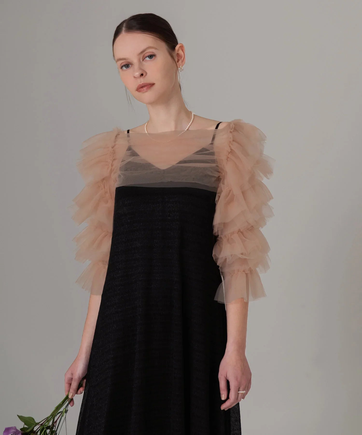透明薄紗讓您恰到好處地露出肌膚,同時也能遮蓋您的背部和上臂。